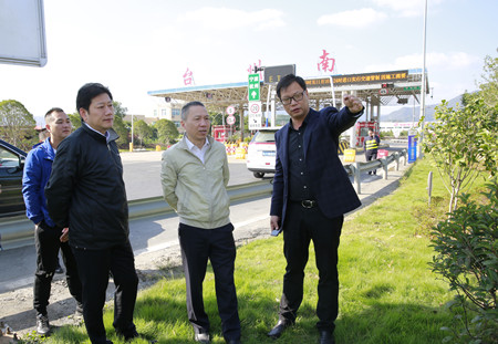圖為集團副董事長、總經(jīng)理張建平在臺州南收費所主站考察協(xié)調(diào)院橋互通綠化、養(yǎng)護等工作