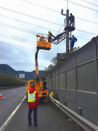 近日,集團工程養(yǎng)護部機電設備維養(yǎng)中心組織施工單位,頂著寒風冷雨對沿線有裂痕破損的云臺太陽能板進行了拆除更換,為即將到來的春運工作打下堅實的基礎。 集團路段共有36個監(jiān)控云臺,它們在提高高速公路管理和服務水平上起著重要作用,當發(fā)生交通異常時,能及時確定事故并實時發(fā)布相應的誘導和救援信息,保障道路暢通,減少財產(chǎn)損失。維養(yǎng)中心在之前一次摸底排查中發(fā)現(xiàn)沿線有10處云臺太陽能板由于年久老化,面板晶體出現(xiàn)不同程度開裂破損,嚴重影響太陽能供電效果,導致監(jiān)控設備無法有效運轉(zhuǎn)。
