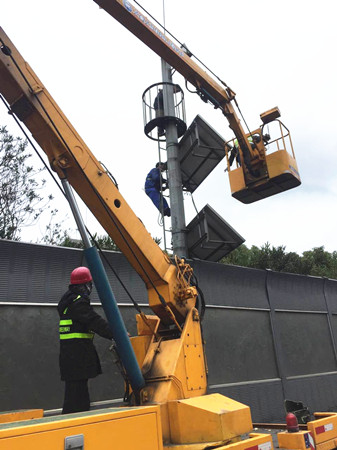 上圖為更換太陽能板現(xiàn)場 為盡快解決這一問題,中心聯(lián)系三家太陽能板供應商,通過對性能、價格、服務等多方面比較后,最終選定杭州一家單位負責此次太陽能板供貨、拆除及安裝工作。1月24日,設備到貨,但同時也碰上了今年入冬以來最強冷空氣??扇舨患皶r更換,勢必會影響春運安全行車。 面對困難,中心隊員并未退縮,每天起早摸黑,帶領安裝人員親赴施工現(xiàn)場,負責監(jiān)管和預警工作。每當路面飛駛而過的車輛帶起陣陣寒風,吹的隊員瑟瑟發(fā)抖時,施工人員都會勸說隊員回車上休息,但都被謝絕了,不僅依舊緊盯施工進度和質(zhì)量,還協(xié)助他們一起拆卸和搬運。在大家共同努力下,所有破損太陽能板在不到3天的時間里被拆卸和更換,比預定時間提前了整整一天。 更換后的新太陽能板最大輸出功率較之前提高了15%,這將大大提升太陽能板對蓄電池充電效率,保證監(jiān)控云臺有效運轉(zhuǎn),為高速的安全暢通保駕護航。 項寅曉
