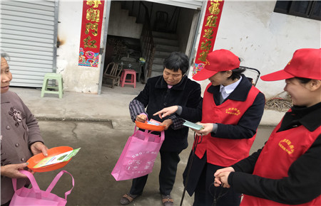 圖為志愿者派發(fā)宣傳冊(cè)
