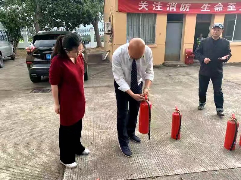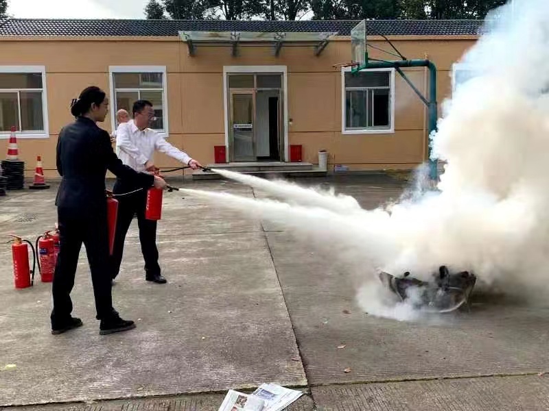 圖為滅火器演練現(xiàn)場(chǎng) 演練現(xiàn)場(chǎng),老員工們按照“一看二搖三拔四噴”的使用方法,熟練地檢查了滅火器有無(wú)過(guò)期,隨后搖動(dòng)瓶身、拔出插銷(xiāo),對(duì)著火源根部噴了下去,熊熊火勢(shì)瞬間被熄滅。