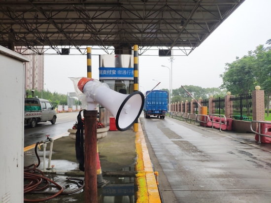 圖為入口處放置的語音警報小喇叭 在嚴把入口關中,該所要求入口必須有人員在崗,履行“一崗雙職”的重任,時刻關注入口情況,及時發(fā)現(xiàn)并勸阻違規(guī)車輛和人員的進入。此外,入口顯眼處懸掛“請珍愛生命,禁止行人和非機動車上高速”的警示標語。入口處增添放置的管控小助手---語音警報器,循環(huán)播放普通話和方言警示標語:“行人、自行車、摩托車禁止上高速公路”。入口安全島頭和邊溝處放置水碼,防止行人、摩托車、電動車和自行車從邊溝處和超寬車道進入高速。而由維養(yǎng)中心人員在入口高處安裝的攝像裝置,只要行人、自行車等非機動車輛出現(xiàn)在攝像范圍內,就會立刻傳來“警戒區(qū)域,請盡快離開”的持續(xù)性警報聲。在人員的管控和設備的警示下,收費所入口安全不斷地提升。