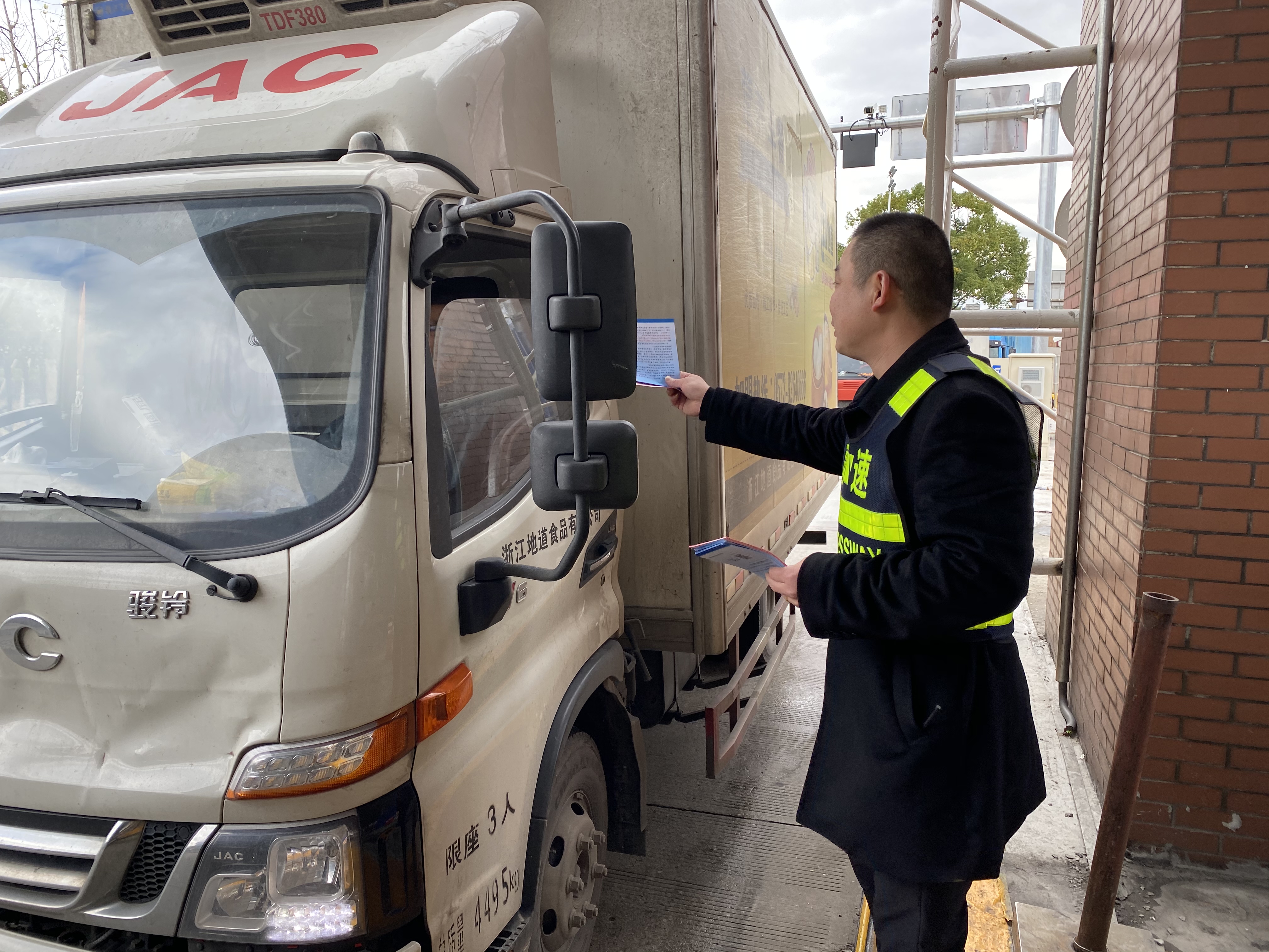 圖為工作人員向過(guò)往司機(jī)發(fā)放宣傳冊(cè)