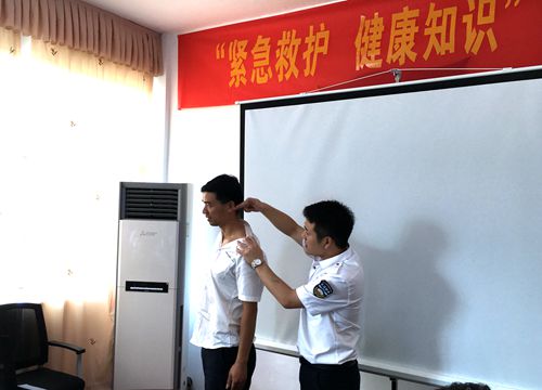 圖為授課現場 授課老師向水平為大家講述了現場心肺復蘇術:判斷呼吸→高聲呼救→擺體位→打開氣道→人工呼吸及如何進行按壓與吹氣,隨后他授以簡單的醫(yī)學理論知識,對高血壓、心臟病、糖尿病等疾病的預防作了普及。當談及上班族普遍面臨的不樂觀的嚴峻現實:受肩周炎、頸椎病、腰椎間盤突出等職業(yè)病困擾時,向老師以現場演示的方式教大家?guī)渍袀鹘y(tǒng)的中醫(yī)方法——穴位按摩,鼓勵大家自己動手,通過按摩這種最直接的方法,緩解不適。