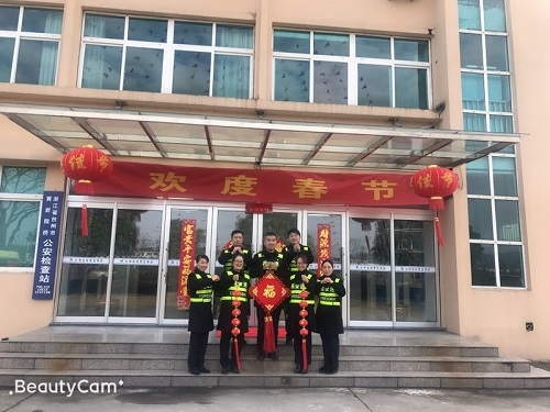 圖為布置好的辦公樓現(xiàn)場(chǎng) 下午,大家對(duì)管理房辦公樓道的蜘蛛網(wǎng)進(jìn)行了清理,對(duì)大門口進(jìn)行布置:掛起燈籠、貼上對(duì)聯(lián)、拉好橫幅和彩旗??紤]到春節(jié)期間保潔員放假,生活垃圾較以往會(huì)有所增加,特在各角落多增放了幾只垃圾桶。 負(fù)責(zé)掃塵的同事認(rèn)真對(duì)待,干勁十足。在大家的共同努力下,經(jīng)過(guò)掃塵后的所面貌煥然一新,節(jié)日的氛圍較為濃厚。該所負(fù)責(zé)人要求大家尊重今天的勞動(dòng)果實(shí),春節(jié)期間繼續(xù)做好保潔工作。最后,大家即興在大門口合了影,并送上新年的祝福,擁抱充滿希望的2019年! 夏蓮萍