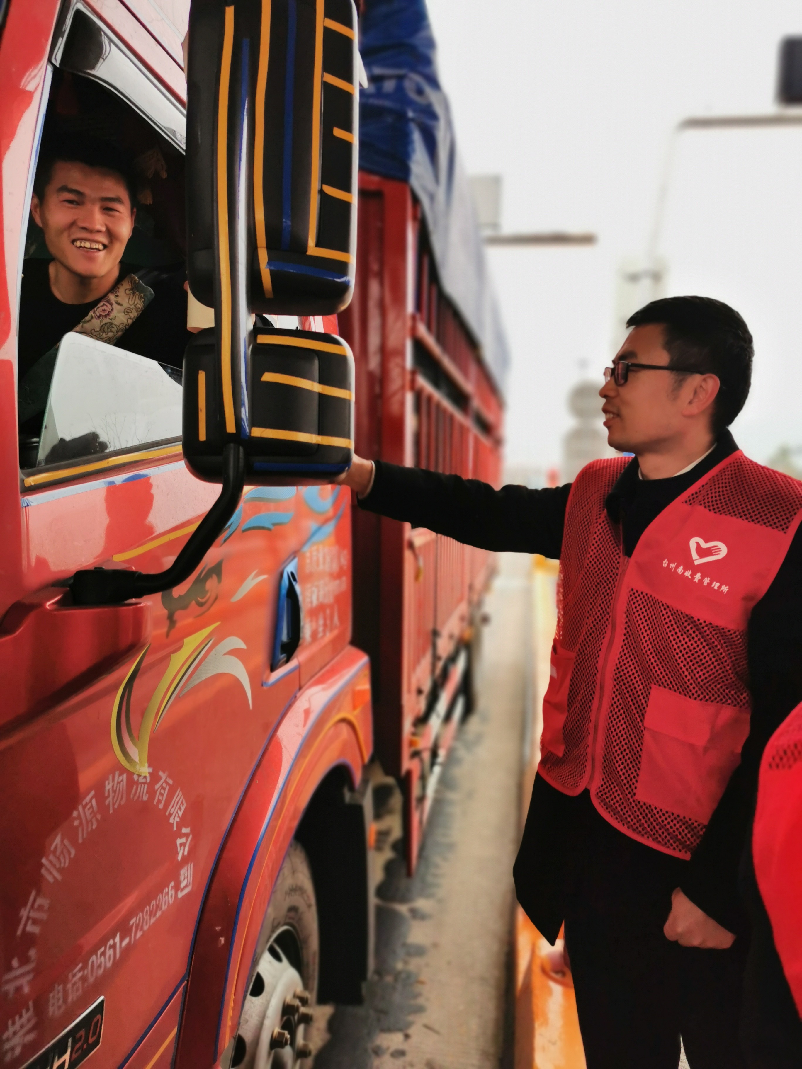 當(dāng)天上午,臺(tái)州各地迎來(lái)“2021年第一場(chǎng)雪”,志愿者們身著紅馬甲,在收費(fèi)所崗?fù)ぐ踩珝u上搭起了愛(ài)心服務(wù)臺(tái),迎著風(fēng)雪準(zhǔn)備送溫暖用品。10點(diǎn)左右,雪下得大了,寒意更甚,大家在收費(fèi)過(guò)道上來(lái)來(lái)回回,將一杯杯熱乎乎的紅糖姜茶送到過(guò)往的司乘人員手中,并告知路況信息,提醒司機(jī)強(qiáng)冷天氣注意行車安全。司乘人員握著姜茶露出友好的笑容,令大家感受到了溫暖的力量。
