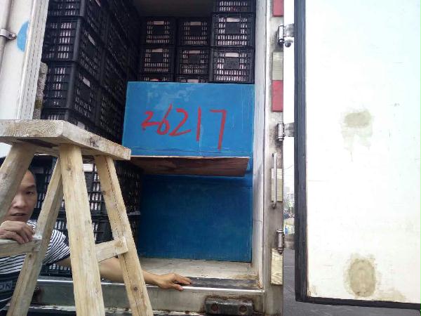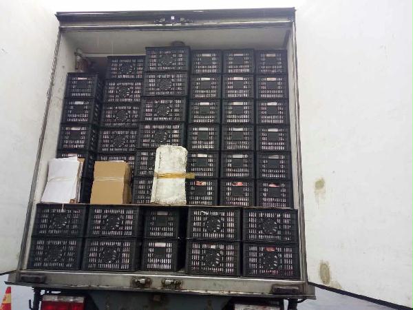 圖為被處罰的車輛 早上10點40分左右,這輛運蘋果的貨車駛?cè)胧召M站的一號崗?fù)?,司機師傅說自己運的是蘋果,根據(jù)公司規(guī)定,綠農(nóng)車檢查必須開車門檢查貨物。憑著多年的檢查經(jīng)驗,當(dāng)班班長童軍偉發(fā)現(xiàn)這輛綠農(nóng)車有問題,覺得重量遠(yuǎn)遠(yuǎn)不夠,可能不符合“綠農(nóng)”免費政策。果不其然,車廂中“深藏玄機”,左右兩側(cè)各有一排玻璃鋼魚箱,這就給檢查增加了難度。當(dāng)班班長要求司機師傅把最后兩排箱子拿掉,想檢查玻璃魚缸,然而這個司機極其不配合,還惡意刁難工作人員,說什么也不搬蘋果。
