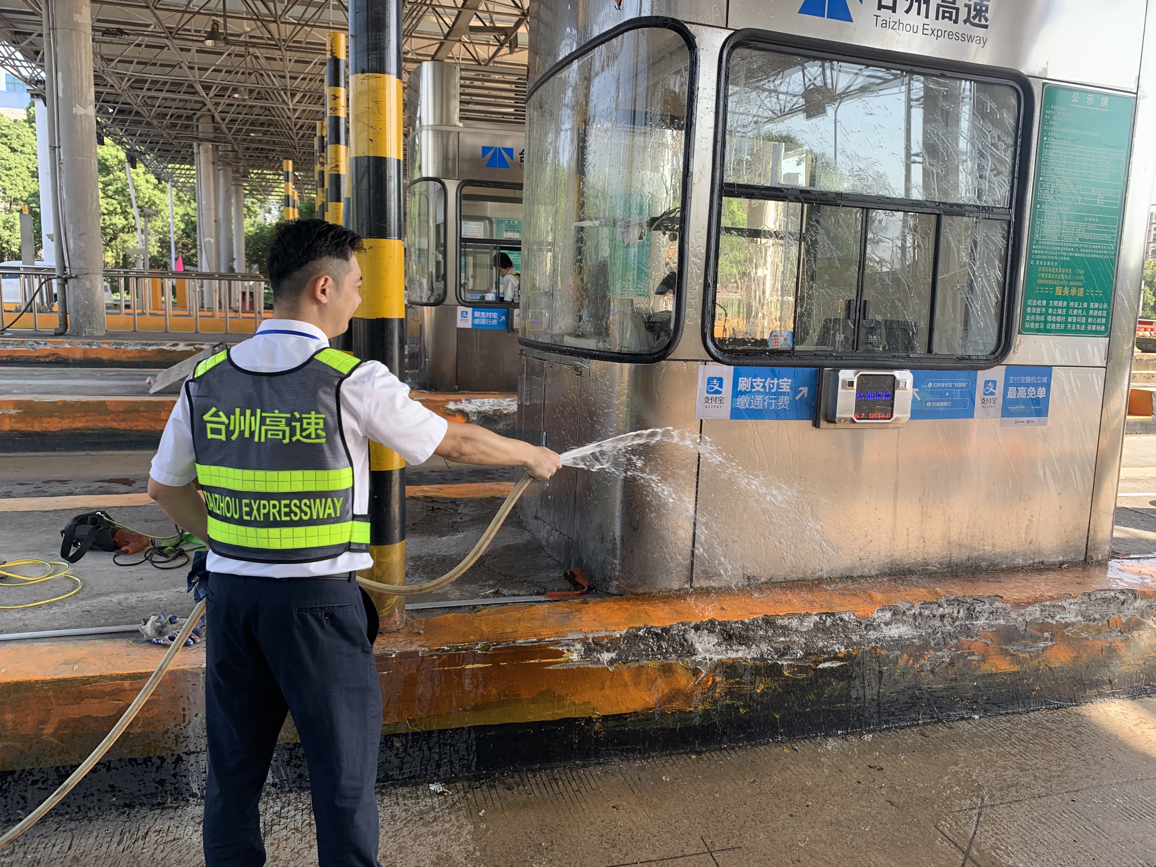 圖為工作人員打掃車(chē)道衛(wèi)生 此次環(huán)境衛(wèi)生大掃除本著徹底清理、不留死角的原則,以班組為單位,細(xì)分責(zé)任區(qū),明確保潔要求,限時(shí)清理,全所員工充分發(fā)揚(yáng)不怕苦、不怕累的精神,重點(diǎn)對(duì)收費(fèi)站內(nèi)外廣場(chǎng)、車(chē)道、崗?fù)ぁu頭、邊溝、標(biāo)志標(biāo)牌等區(qū)域及設(shè)施設(shè)備進(jìn)行了一次深度清潔。