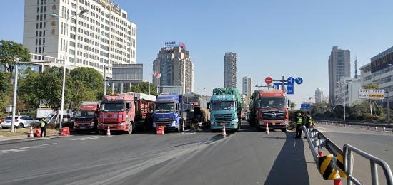 圖為所班子成員帶頭指揮交通 早上8點11分,接到監(jiān)控中心電話:入口開通,開足兩個人工車道。當(dāng)時正值新收費模式開通前對稱重超限車輛勸返工作的開始。經(jīng)過幾個小時封道,此時的入口車流已經(jīng)一望無際,如果碰到超限車輛,勸返更是難上加難。 在困難中想對策,所領(lǐng)導(dǎo)班子成員提出“輪流式放行”:入口的車輛分別是從橋上和橋下過來,分為4個車道,每個車道輪流放行5分鐘,這樣井然有序,不容易造成擁擠和交通事故,并且可以快速放行。每個車道前都擺放了一個小紅帽,專人看守。其他人員分別在入口指揮,藍(lán)牌貨車和未安裝ETC的車輛從大小客車車道通行,大貨車從混合車道通行,裝有ETC的客車和集裝箱走ETC專用通道。大家不斷穿梭在車道、廣場之間,向司機一遍遍耐心解釋,指揮每一輛車順利通行。1名孕婦行動不便,被分在監(jiān)控室接聽電話,查詢?nèi)肟跓o信息的車道。所有人一身汗,忙得顧不上喝一口水,臨近飯點也沒有人主動去吃飯,大家都頂住壓力,從黎明到黃昏一心想著快速準(zhǔn)確高效放行。