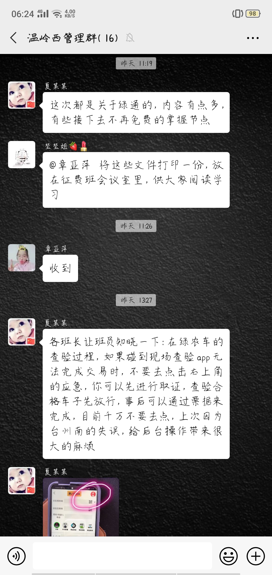 圖為需要學(xué)習(xí)的各個文件內(nèi)容 培訓(xùn)采取集中學(xué)習(xí)與線上學(xué)習(xí)相結(jié)合,理論知識與現(xiàn)場操作相結(jié)合、互動交流與相互提問相結(jié)合的方式開展,通過釘釘、微信等學(xué)習(xí)平臺,每天,各班班長組織班員開展崗前五分鐘提醒、崗后班組集中學(xué),確保每一名收費(fèi)人員能夠熟練掌握新收費(fèi)系統(tǒng)的各項(xiàng)操作流程。此外,各班班長及時梳理匯總收費(fèi)員們在實(shí)際操作中遇到的問題,并上傳至管理群,群中全員參與,一起討論學(xué)習(xí)。遇到無法解決的問題時,所負(fù)責(zé)人第一時間與上級主管部門溝通,以尋求最佳解決方案,并發(fā)布到群里,明確操作流程和統(tǒng)一相關(guān)政策解釋工作。 本次培訓(xùn)不僅使全所每一位員工鞏固了前期業(yè)務(wù)知識,也更加深入掌握了收費(fèi)新系統(tǒng)的操作流程以及新收費(fèi)政策,為恢復(fù)正常收費(fèi)穩(wěn)步進(jìn)行奠定了堅(jiān)實(shí)的基礎(chǔ)。 鄭霞霞