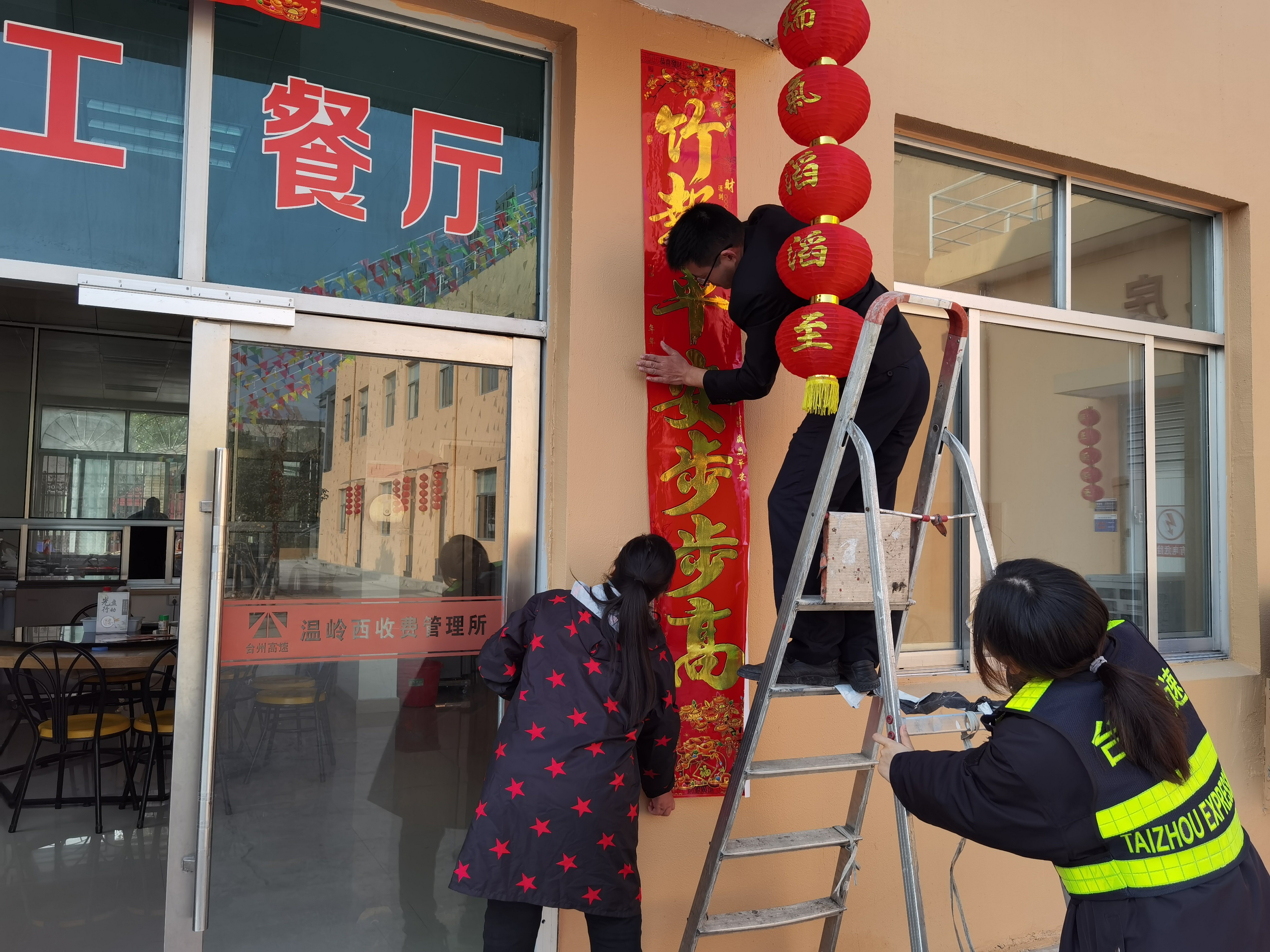 “爆竹聲中一歲除,春風(fēng)送暖入屠蘇。千門萬戶曈曈日,總把新桃換舊符。”時值2021年春節(jié)來臨之際,為營造歡樂喜慶、祥和溫馨的節(jié)日氛圍,溫嶺西收費所組織職工對站區(qū)進(jìn)行布置,掛燈籠、貼對聯(lián),歡歡喜喜迎新年。