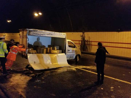 驚險(xiǎn)!大溪嶺隧道內(nèi)小貨車側(cè)翻油箱漏油