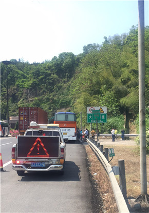 見狀,巡邏車馬上開啟預警模式,指揮大客車緩慢駛?cè)氡睆V場。隊長李新波詢問原因得知,浙J**123是椒江開往楠溪江的旅游包車,途中發(fā)動機故障,失去動力,車子開不了,現(xiàn)正在聯(lián)系公司,讓公司派車。但車子停在應急車道,行人肆意穿越隔離帶很危險,高速公路車多速度快,隨時可能發(fā)生意外。對此,執(zhí)勤隊員當即帶領乘客轉(zhuǎn)移安全地帶等待,告知他們在高速公路上不得隨意穿行。