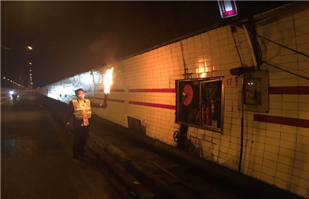 期間,大溪嶺隧道所執(zhí)勤隊員積極配合,對隧道內(nèi)消防設(shè)施設(shè)備進(jìn)行了全面測試,著重檢查了滅火器的使用期限、有無泄漏現(xiàn)象,消防栓能否正常開啟、出水效果如何,消防水帶有無損壞等。經(jīng)檢測,隧道內(nèi)火災(zāi)報警系統(tǒng)全部正常。同時利用隧道清洗之際,與各施工單位簽訂“施工安全告知書”。并進(jìn)行現(xiàn)場查看,發(fā)現(xiàn)施工單位的腳手架沒有貼發(fā)光標(biāo)志,存在安全隱患,立即要求施工單位負(fù)責(zé)人當(dāng)場整改。