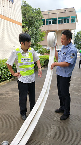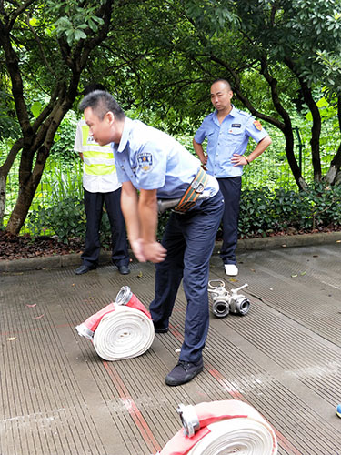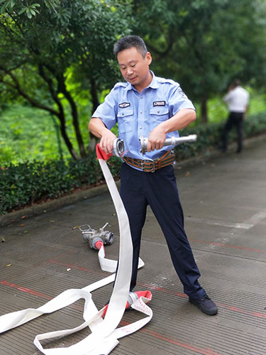 圖為主講人馮常敏操作示范現(xiàn)場 現(xiàn)場,“馮大師”腳下放著兩盤水帶,站姿已成“丁”字步,雙腿微曲,兩拇指與食指握住水帶根部,使虎口以順時針方向?qū)?zhǔn)接口處,做好甩開的準(zhǔn)備?!八Φ谝槐P水帶,要運(yùn)用手腕的力量,要提起水帶并高于地面20到30厘米,再用大臂帶動小臂的力量向前甩出?!?“馮大師”耐心地指導(dǎo)。 接下來是兩盤水帶連接的關(guān)鍵時候,“馮大師”左右手熟練操作,將如何連接的操作細(xì)節(jié)一一展現(xiàn)出來,同時邊操作邊說明注意事項(xiàng),整套動作連貫又迅速,操作一氣呵成,一旁的新人仔細(xì)觀摩學(xué)習(xí)。