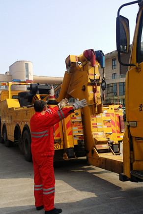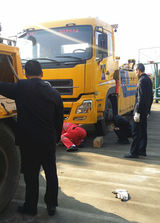 圖為演練現(xiàn)場 廣場上,當指揮員下達“拖車兩次增高作業(yè)演練開始”口令后,拖車在輔助工的引導下,駕駛員將拖車緩緩地倒到故障車的前面,停穩(wěn)后,輔助工立馬從工具箱里拿出托叉、方木等附件,將托叉插入托叉座,調整好位置,駕駛員操縱操作手柄進行第一次托舉鋼板作業(yè)。當抬高一定高度后,輔助工將方木填在前輪胎下面,然后放下托臂,重新調整好位置,進行第二次托舉工字梁作業(yè),直到達到安全高度,輔助工才抽出方木,駕駛員迅速將故障車拖離現(xiàn)場。兩次增高作業(yè)順利完成,演練達到了預期效果。 演練現(xiàn)場,氣氛熱烈,員工們針對復雜車型和去年拖車過程中發(fā)生的事故案例,相互探討,并紛紛表示在今后的工作過程中,要根據車型的實際情況,掌握各種作業(yè)技巧,同時要吸取事故教訓,增強安全意識,確保作業(yè)安全。 何先林