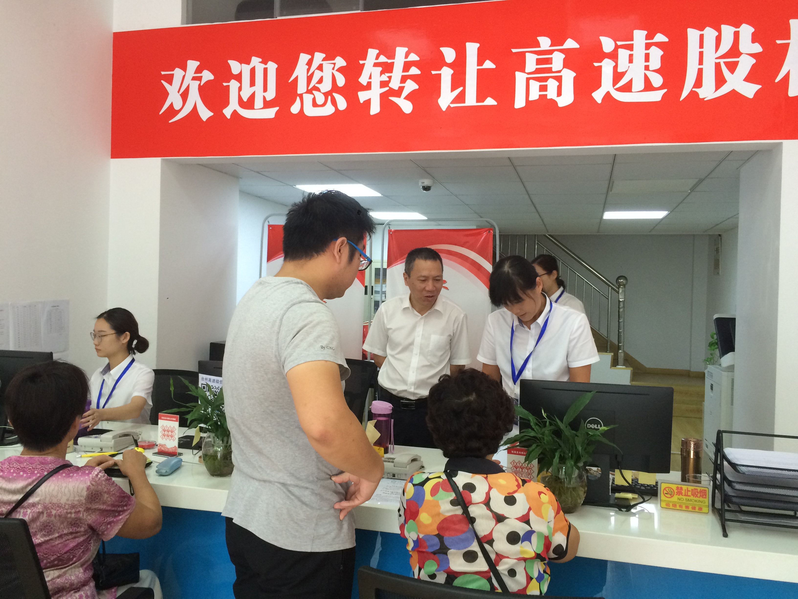 “請問您是通過什么途徑知曉臺州高速股權(quán)收購的?您是哪個單位的?”10月10日上午,集團副董事長、總經(jīng)理張建平在椒江收購點親切詢問正在辦理股權(quán)轉(zhuǎn)讓業(yè)務(wù)的股東。