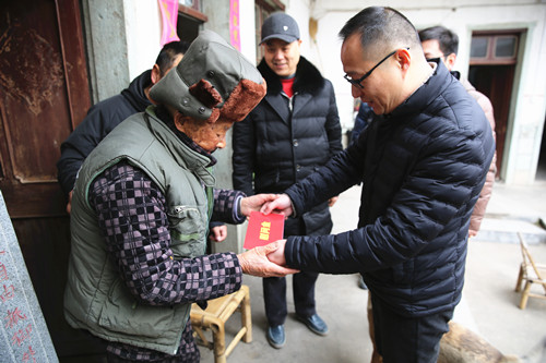 圖為集團副總經(jīng)理羅小將慰問村里困難群眾
