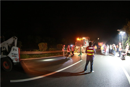 反復(fù)溝通,施工保質(zhì)保進(jìn)度。要在車流量極大的主干線上夜間順利施工,不僅對工程質(zhì)量、進(jìn)度負(fù)責(zé),更要對安全保暢負(fù)責(zé),不能有半點(diǎn)疏忽,不允許絲毫麻痹,而且涉及面極廣。不僅涉及工程部與施工監(jiān)理單位,更涉及到高速交警、路政及運(yùn)營管理等多個(gè)部門,前期工程部協(xié)交警、營運(yùn)部、監(jiān)理、施工等各相關(guān)單位就施工方案反復(fù)論證,一次次的討論與交流,計(jì)劃改了又改,從提前發(fā)布公告到路口設(shè)立標(biāo)志,從預(yù)警車輛安排到分流時(shí)間節(jié)點(diǎn),從搶險(xiǎn)預(yù)案到應(yīng)急小分隊(duì)建立,路面的反復(fù)測量,綠化養(yǎng)護(hù)的同期推進(jìn).....千頭萬緒,在于每一個(gè)細(xì)節(jié)的反復(fù)論證。一直到11號下午,確定了最合理有效的交通組織方案,施工前的安全和技術(shù)方面有了最后的交底,器械設(shè)備、材料、人員班組配備等一一清點(diǎn)得到最終確認(rèn)。