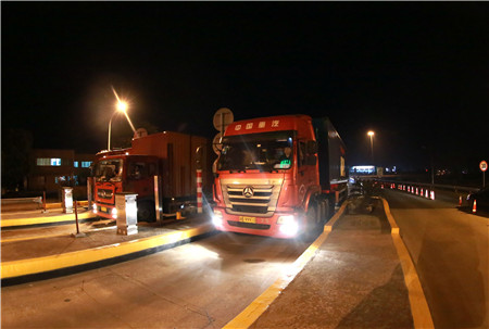臺州南、溫嶺西收費(fèi)所,分流9點(diǎn)開始,由于夜間通行貨車居多,每輛需計(jì)重收費(fèi),且夾雜綠農(nóng)車,情況復(fù)雜,分流1個(gè)小時(shí)后出口車道已排成車燈長龍,壓力巨大?!奥房趨f(xié)警一定要守住第一道防線,不能讓任何車輛進(jìn)入!”富有經(jīng)驗(yàn)的所長王益民已在車道上與交通協(xié)管員一起指揮疏導(dǎo)交通了。從晚上10點(diǎn)到凌晨6點(diǎn),持續(xù)奮戰(zhàn)8個(gè)小時(shí),在有限的具有稱重能力車道的情況下,臺州南、溫嶺西共完成了5千多輛車的收費(fèi)工作,流量相比平時(shí)增加一倍。