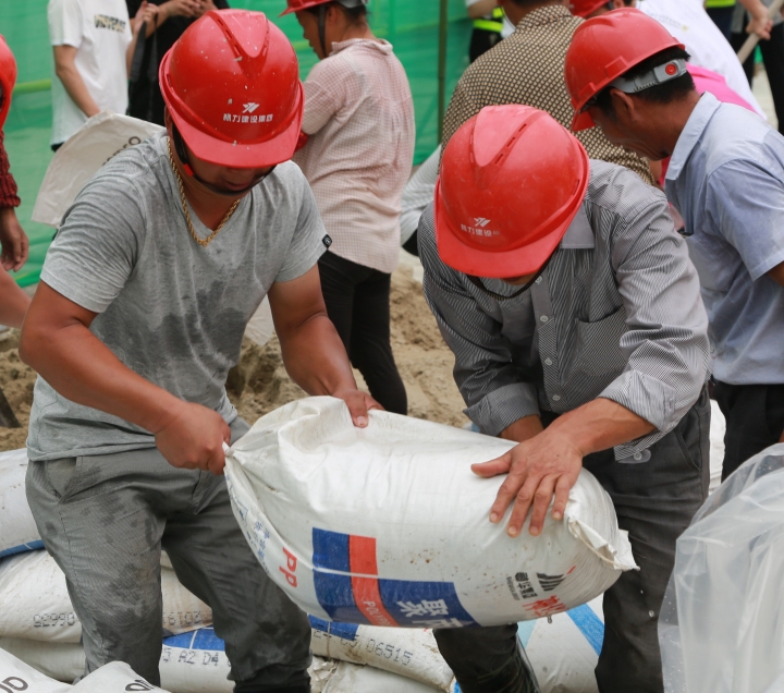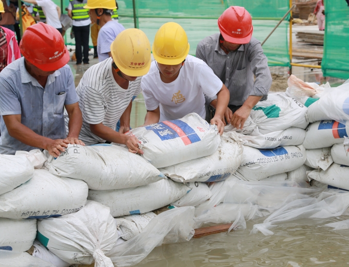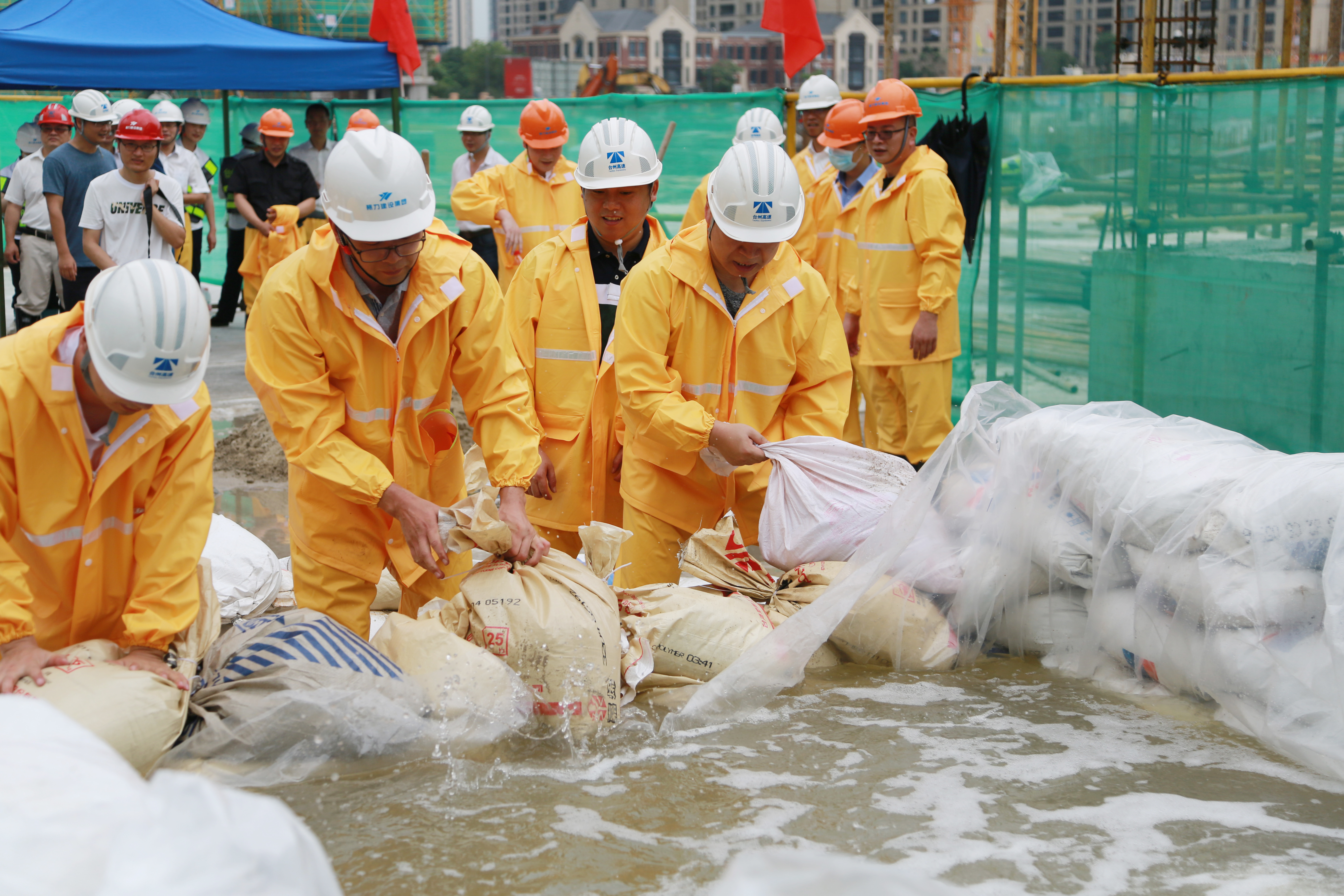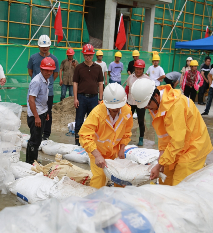 圖為模擬建筑工地面對洪水倒灌的現(xiàn)場應急搶險