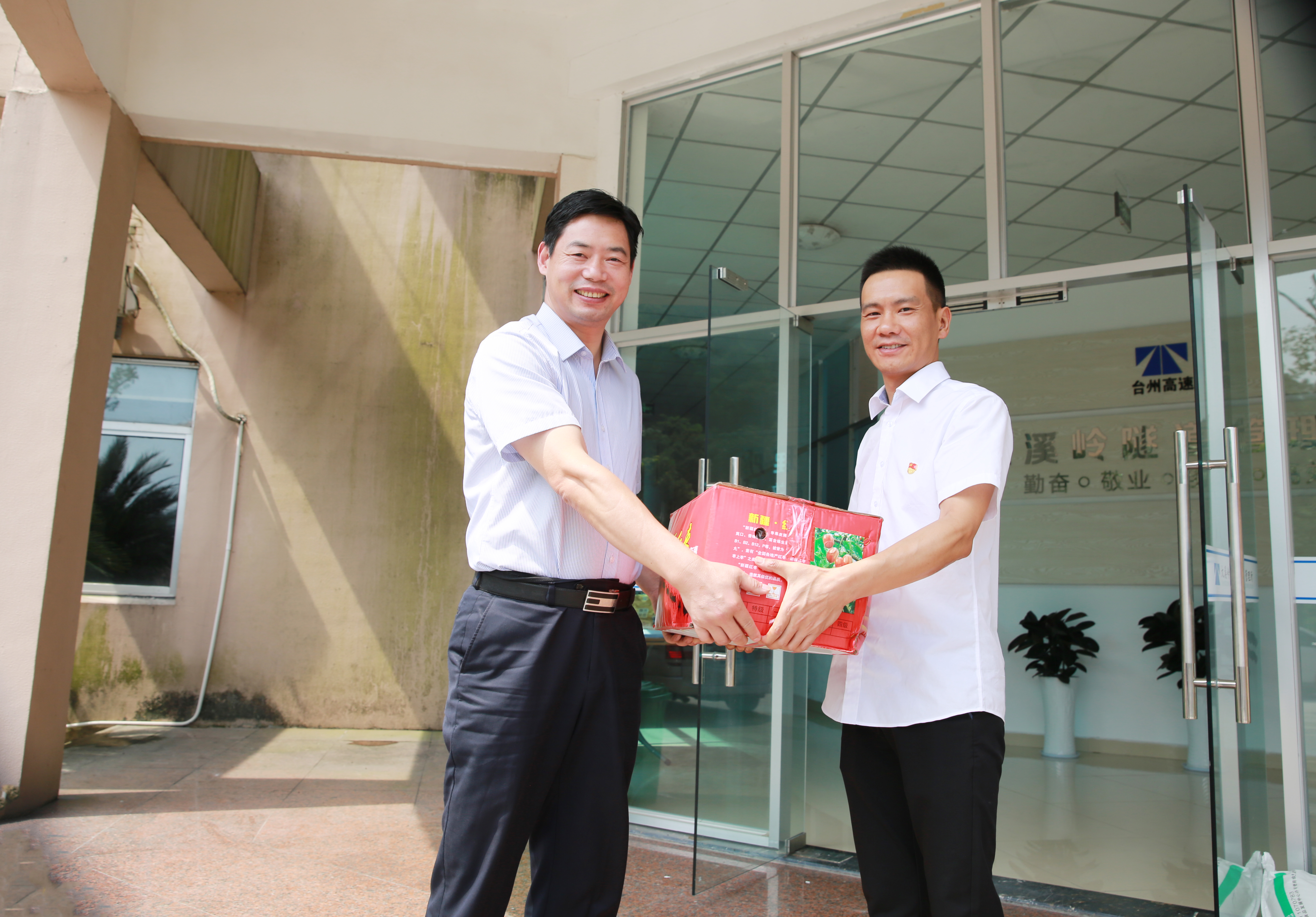 “高溫酷暑,大家辛苦啦!高溫工作一定要注意自身身體,避免中暑。”由集團(tuán)黨委書(shū)記、董事長(zhǎng)、總經(jīng)理陳文波,副總經(jīng)理章海峰帶隊(duì),分別對(duì)臺(tái)州高速交警支隊(duì)、臺(tái)州高速路政大隊(duì)、臺(tái)州收費(fèi)所、施救中心、維養(yǎng)中心、監(jiān)控中心、黃土嶺隧道所、臨海南收費(fèi)所、匯通養(yǎng)護(hù)公司等地進(jìn)行走訪慰問(wèn)。