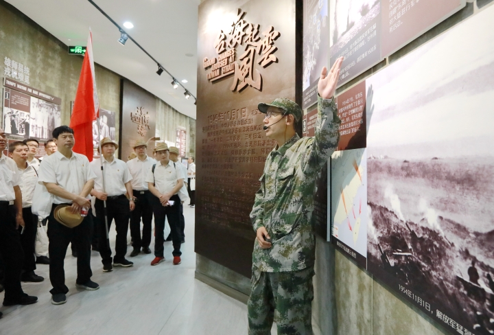 走進(jìn)一江山島戰(zhàn)役遺址史料館,一幅幅記載戰(zhàn)爭(zhēng)歷史的老照片,一件件留存戰(zhàn)爭(zhēng)氣息的武器裝備,把大家“穿越”到了那個(gè)激情燃燒的年代。透過(guò)史料館的資料,大家仿佛依舊置身于炮火連天的歲月之中,身臨其境,切身感悟“不怕艱險(xiǎn)、智勇堅(jiān)定、團(tuán)結(jié)奮斗、不勝不休”的一江山精神。