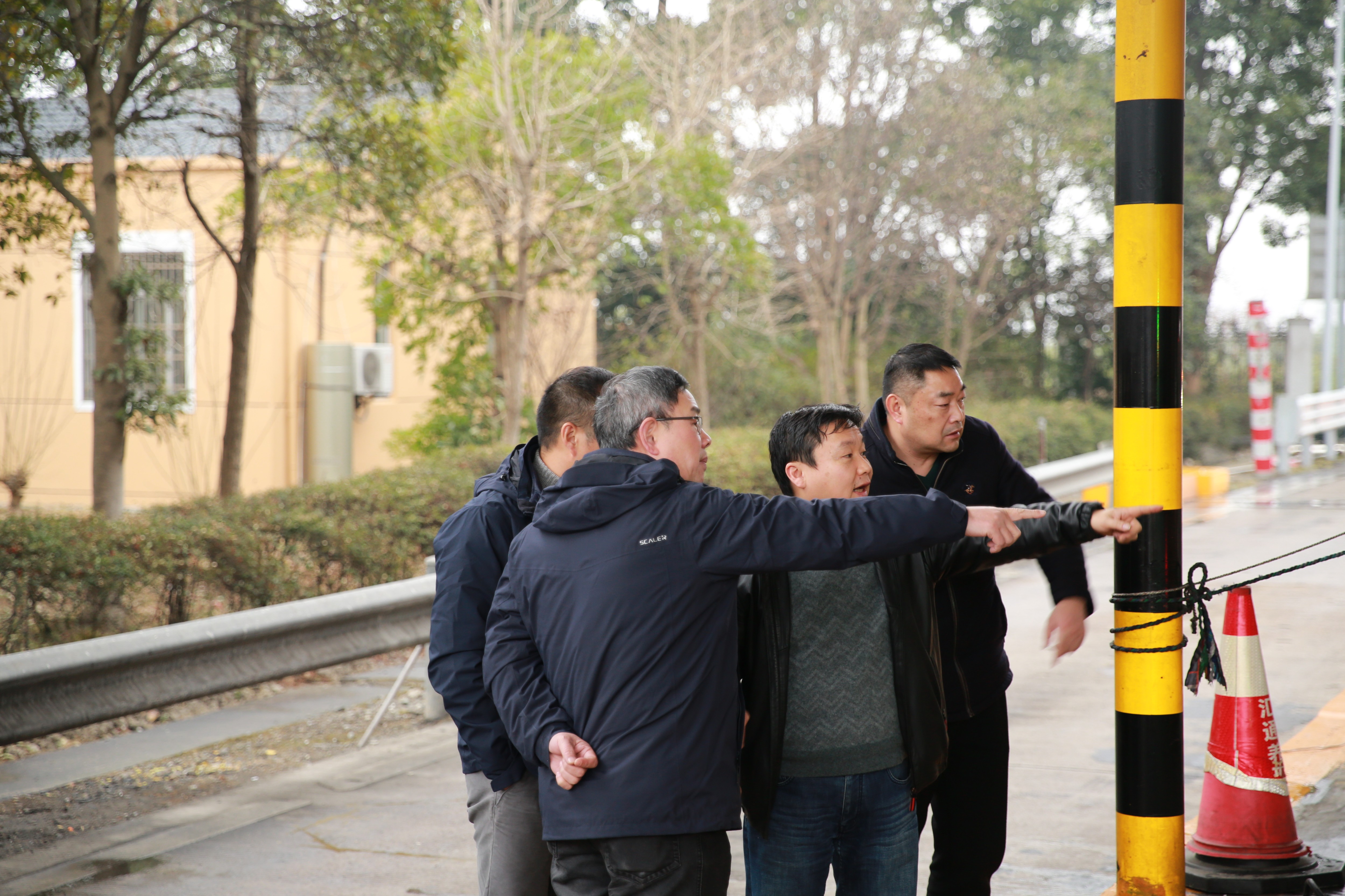 1月20日下午,臺州高速集團(tuán)黨委書記、董事長、總經(jīng)理陳文波趕往臨海南收費(fèi)所,現(xiàn)場指導(dǎo)1月19日深夜大貨車撞倒收費(fèi)崗?fù)さ暮罄m(xù)維修工作。集團(tuán)副總經(jīng)理章海峰,工程養(yǎng)護(hù)部、安保部負(fù)責(zé)人陪同。 事發(fā)現(xiàn)場,各種破損之物于昨晚深夜就已被清理干凈,被撞的1號崗?fù)の恢弥皇O侣懵兜母鞣N電線,以及被截?cái)嗟姆雷仓?。陳文波邊查看現(xiàn)場情況,邊同維養(yǎng)技術(shù)人員就如何加強(qiáng)收費(fèi)崗?fù)ぐ踩禂?shù)展開商討,并提出有關(guān)建議。