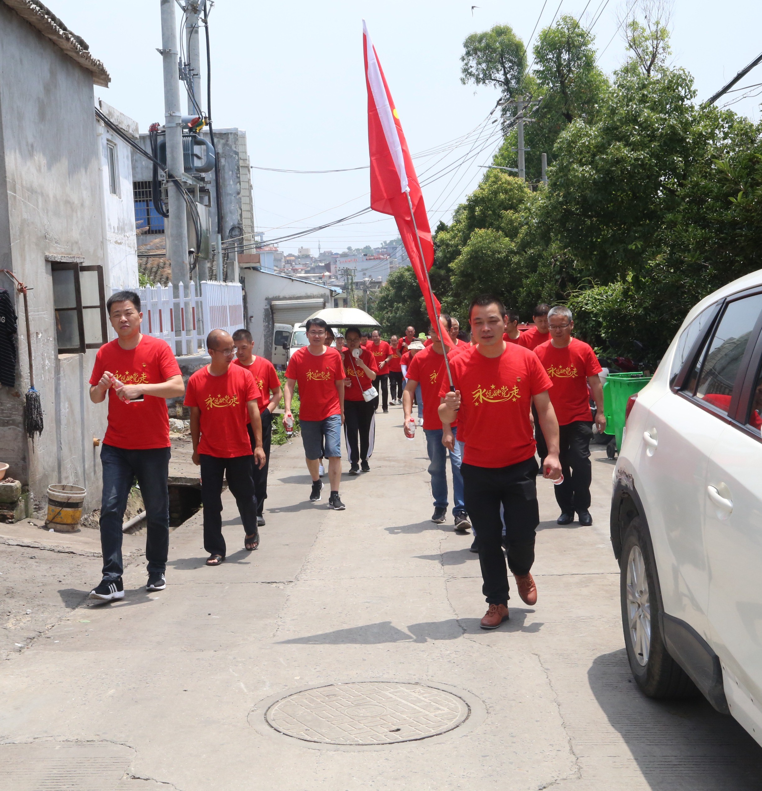 活動當天,烈日炎炎抵擋不住大家追溯紅色基地的熱情,黨員隊伍緊跟黨旗,順著“紅色地圖”,沿著崎嶇小道,大步爬上玉環(huán)坎門英雄基干民兵營。在女民兵們的熱心引導和生動解說下,大家側耳傾聽,目不轉睛地觀看展示墻上與玻璃柜中的民兵隊歷史事跡照片、繳獲的槍支、文件與榮譽獎章等等,玉環(huán)坎門人民的紅色抗爭歷史仿佛仍歷歷在目,打動著每位黨員的內心。隨后,大家在黨旗前光榮宣誓,重溫入黨誓詞,各位黨員緊握右拳,用洪亮的聲音表達著自己對黨的忠誠,對初心使命的矢志不渝。
