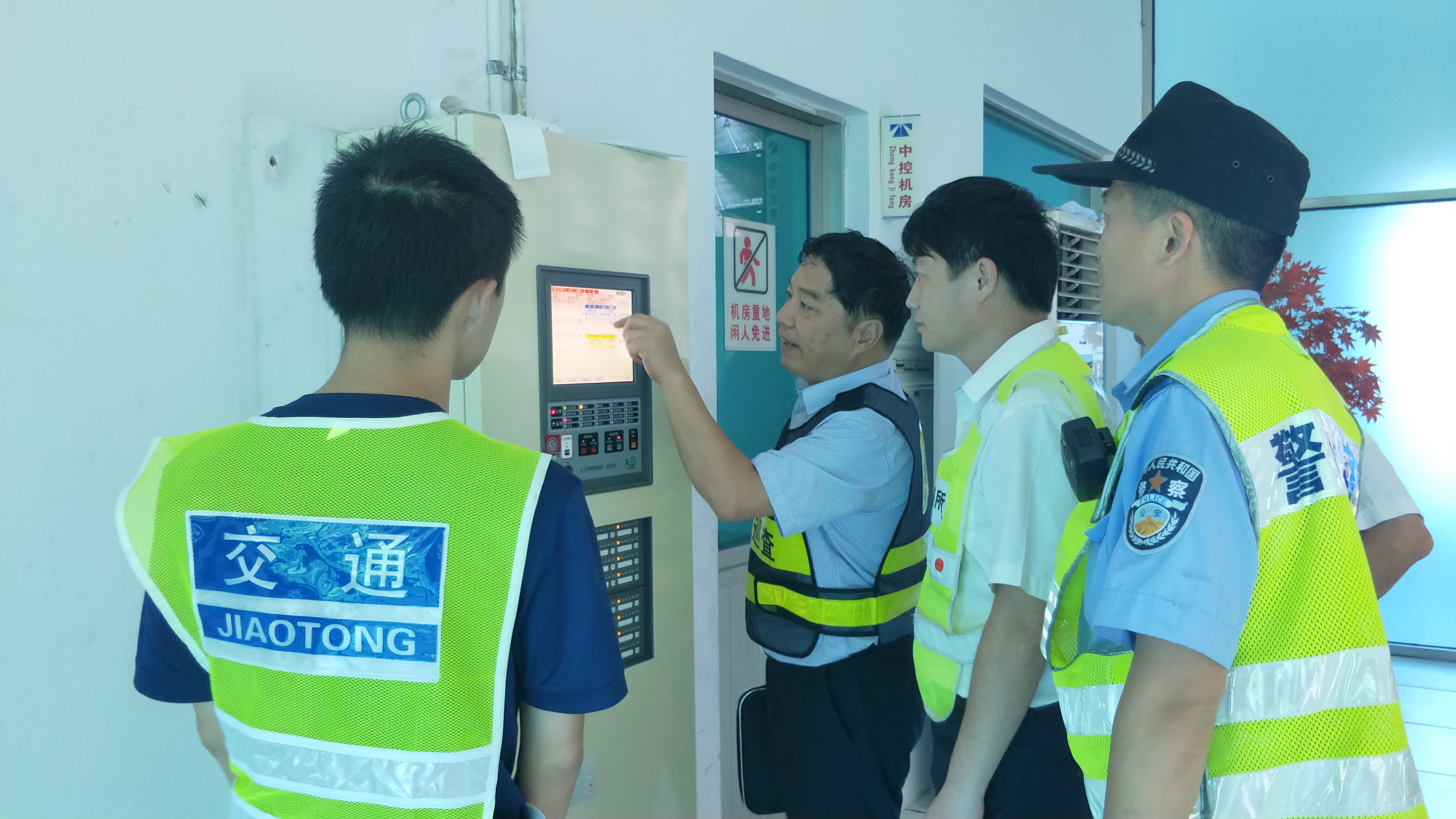 圖為項(xiàng)同富一行檢查大溪嶺隧道所中控系統(tǒng)