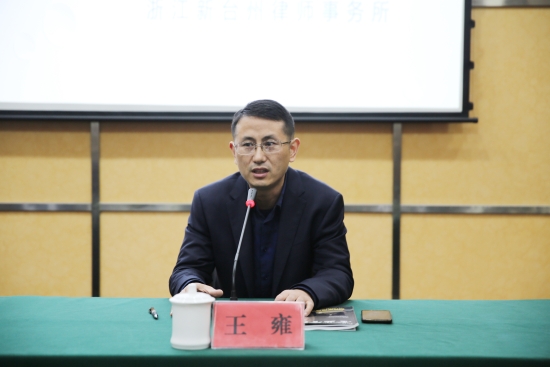 圖為王雍主持培訓(xùn)會(huì) 本次培訓(xùn)會(huì)邀請(qǐng)了浙江新臺(tái)州律師事務(wù)所律師程龍為大家授課。程龍結(jié)合實(shí)際案例對(duì)最新的九民紀(jì)要進(jìn)行解讀,并講解了有關(guān)集團(tuán)提供擔(dān)保、股東代表訴訟、表決權(quán)能否受限、借款合同等相關(guān)法律知識(shí),還對(duì)可能存在的的風(fēng)險(xiǎn),及可能引發(fā)的民事責(zé)任、行政責(zé)任和刑事責(zé)任等進(jìn)行相應(yīng)的介紹。
