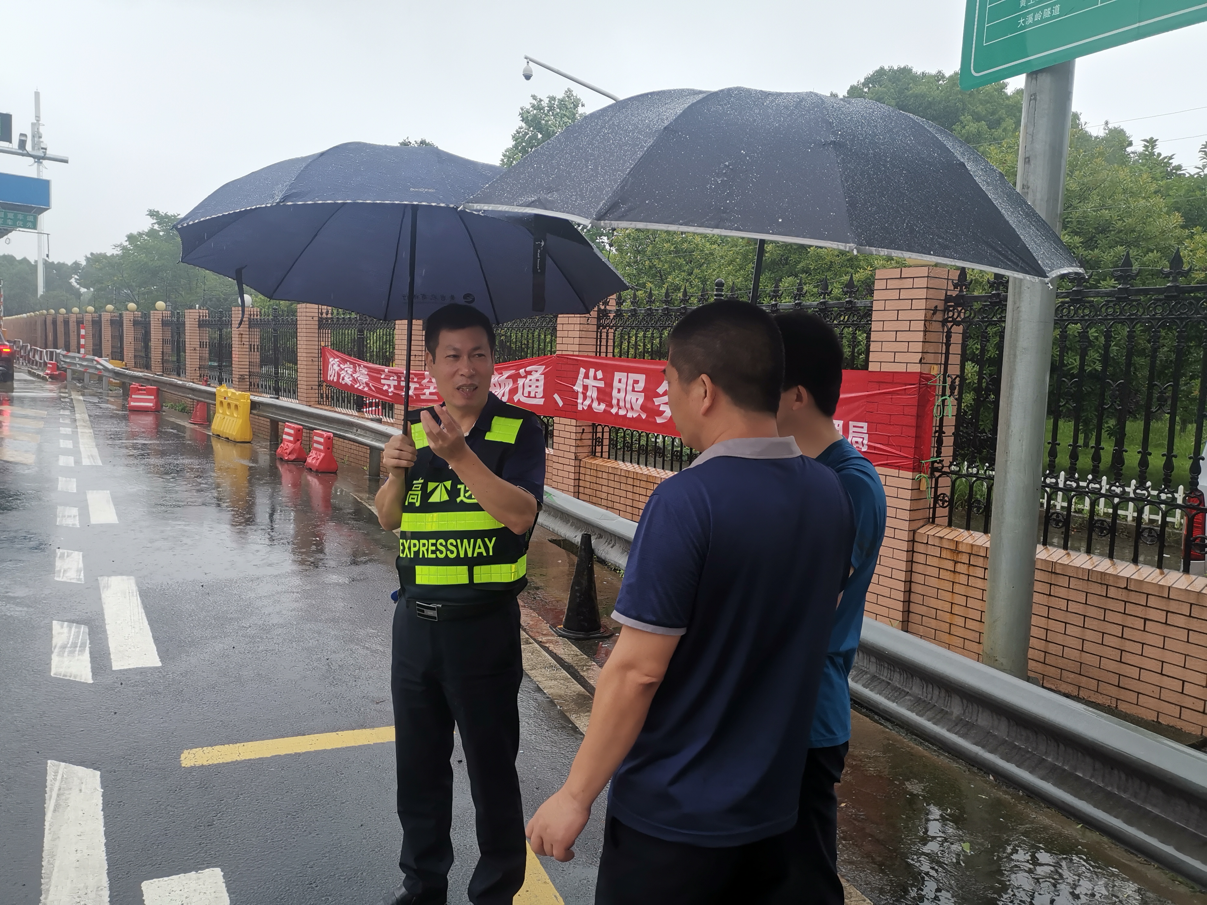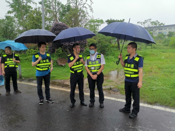 集團(tuán)總工程師江輝到一線開展汛期安全隱患及 收費(fèi)站入口管控檢查 6月8日上午,集團(tuán)總工程師江輝帶領(lǐng)工程養(yǎng)護(hù)部、征費(fèi)管理部、安保部、養(yǎng)護(hù)公司等人員,冒雨開展汛期橋隧邊坡安全隱患排查及收費(fèi)站入口管控檢查。