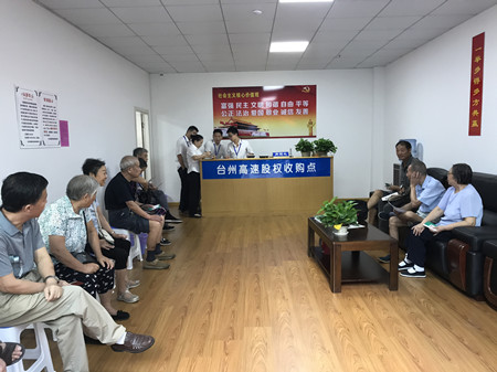 各收購點從一開始接收的第一筆股份轉(zhuǎn)讓,到現(xiàn)在大大小小股份協(xié)議書的簽訂,形形色色的股東都表示很支持和理解臺州高速股權(quán)收購工作,相繼前來轉(zhuǎn)讓股份。有的股東在轉(zhuǎn)了自己的股權(quán)后又立馬發(fā)動親戚好友前來辦理轉(zhuǎn)讓;有的近90歲高齡了還親自到收購點,耐心聽工作人員講解細(xì)節(jié)內(nèi)容;有的稱多出的十多倍收益為意外之喜;有的甚至悔恨當(dāng)年為何不多將資金投到臺州高速……可愛可敬的臺州高速股東們!