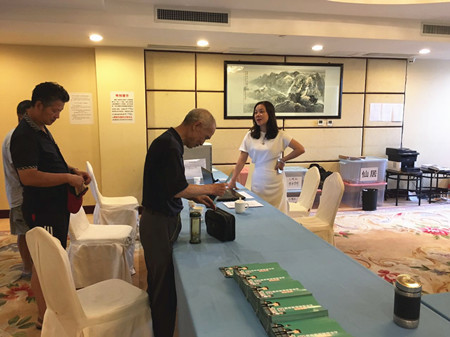 圖為集團副董事長、總經(jīng)理張建平在椒江收購點為股東服務(wù)