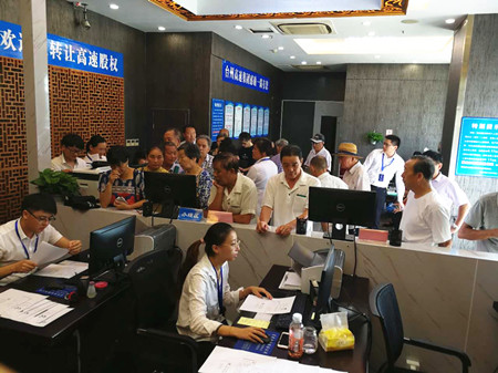 圖為路橋收購點(diǎn)股東辦理股權(quán)轉(zhuǎn)讓現(xiàn)場