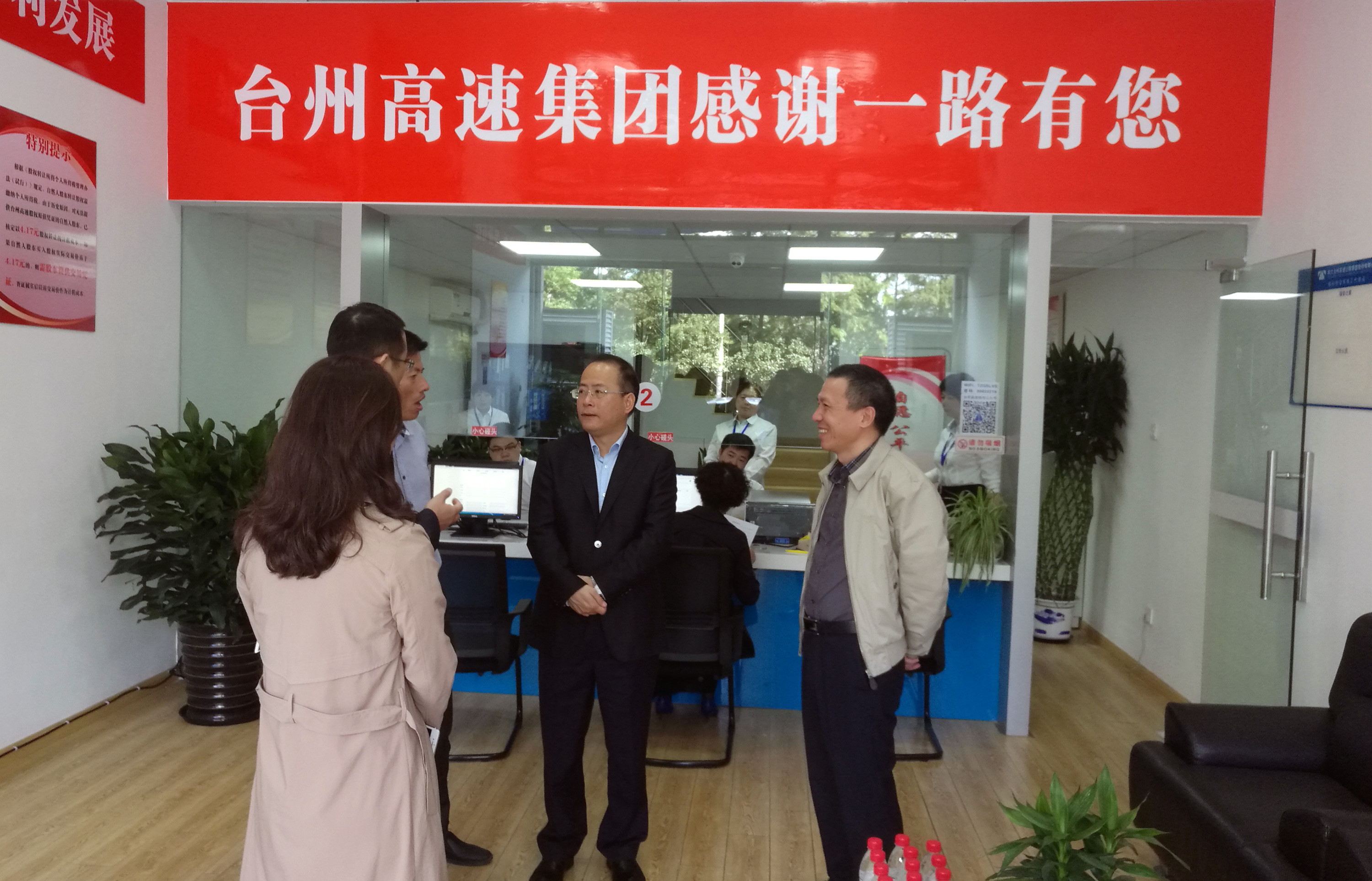圖為市委常委、常務(wù)副市長董貴波到臺州高速股權(quán)椒江收購點調(diào)研