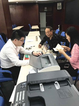 戴著一副黑框眼鏡,憨實魁梧的身形,說話輕言慢語。據(jù)說,某天下班后,還坐在椅子上打電話,一臉溫柔,竊竊私語,同事一直以為他在談戀愛,這打完了電話,才知道是接到股東的電話了,跟對方在解釋股權(quán)收購政策呢。 在股權(quán)流動收購點(diǎn),小李是電腦操作人員,所以也不大參與解說工作。只是那天正好一位阿婆坐在了電腦對面,說話之間才知大字不識,是聽鄰居說的,就自己摸到這里了。正好手里也空了,李騰飛頓頓身子,放松下來,以黃巖特有的吳言儂語跟阿婆解釋了十幾分鐘,果然,白凈的臉上是一臉的和氣,沉穩(wěn)又實在,確實是傳說中的暖男一枚呀。末了,幫阿婆代簽了字,讓阿婆按了手指印。 但是,在工作的時候,小李讓我們見識到了“騰飛”的效果。流動點(diǎn)只設(shè)一臺筆記本電腦,線上操作都?xì)w他,在大溪鎮(zhèn)政府,來的股東有百十號,流動小組包括駕駛員何杰靚迅速開展了流水作業(yè)。此時此刻,小李那一雙肥白的大手在小巧的鍵盤上十指翻飛,靈活敏捷,操作如行云流水,打印機(jī)刷刷地響,不停飛出一份份協(xié)議,傳到下一個工作人員這里。這才知道,每一個人的名字都是名副其實的,“騰飛”的含義是在這里體現(xiàn)的呀。 鄭蔚