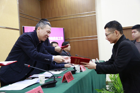圖為集團(tuán)總經(jīng)理張建平給先進(jìn)個人頒發(fā)獎狀