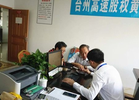 圖為黃巖收購點工作人員服務股東現(xiàn)場 “那時候沒錢,可咱領導干部要帶頭,這錢還是向自家兄弟借的。”這是原市府領導夫人的原話。 “科室里沒人認領,我想著咱也為臺州建設作點貢獻,就當捐款吧!沒想到后來真的有分紅,現(xiàn)在還有這么高的收購價,值了!”這是大多數(shù)股東的原話。