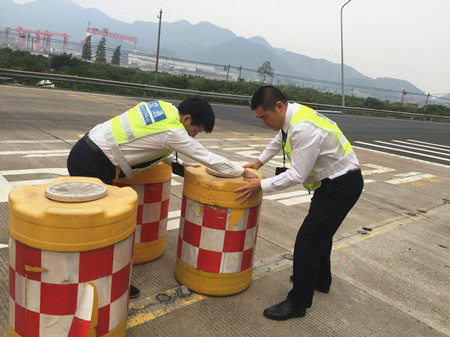 公司沿線四個收費站平穩(wěn)實現路面養(yǎng)護施工期入口轉換 因G15沈海高速臺州段于2017年10月28日零時至11月16日24時封閉施工,施工期間,公司所轄路段溫嶺西、臺州南、臺州、臨海南實行交通管控,公司沿線各收費站、工程和交警、臺州市公路局等部門單位緊密配合,多措并舉,平穩(wěn)實現收費站入口轉換。 為配合公司道路養(yǎng)護和黃土嶺右洞改造施工,公司征費系統(tǒng)提前在各收費站入口LED屏上發(fā)布施工信息,連夜安排趕印50000份施工公告發(fā)放至四個收費所,提醒過往司乘人員提前規(guī)劃施工期間的出行路線。
