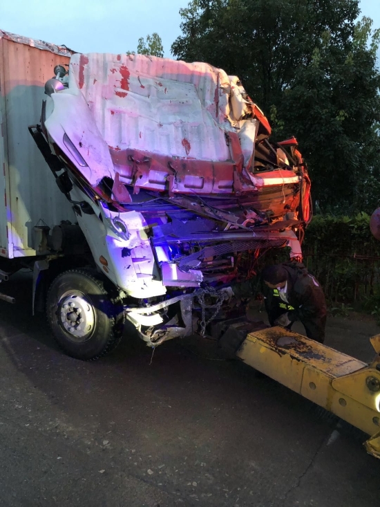 7點30分,經(jīng)過半小時的努力,在輔查員在一旁指揮下,拖車用纜繩進行牽引,吊車配合,將車頭放置可以正常拖曳的地方。