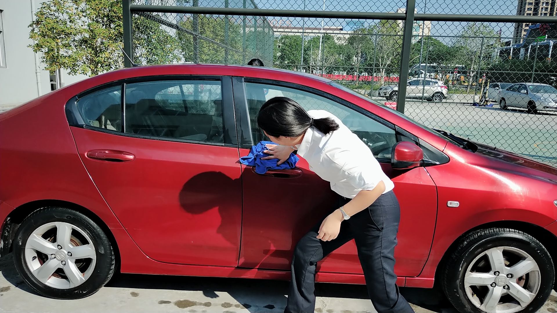 溫嶺西支部書記周超帶領黨員服務群眾 當天上午,活動一開始,前來洗車的車輛絡繹不絕。在支部書記周超的帶領下,五名黨員便開始分工合作。兩名男同志負責沖水、上泡沫、擦洗、再沖水,兩名女同志負責擦干和吸塵器清掃內室,還有一名男同志負責開車挪車,需要清洗的車輛一輛接著一輛,黨員同志們顧不得擦干身上的被水濺濕了的衣服,忙得不亦樂乎??粗幌吹靡粔m不染的車,大家都不約而同地會心一笑。