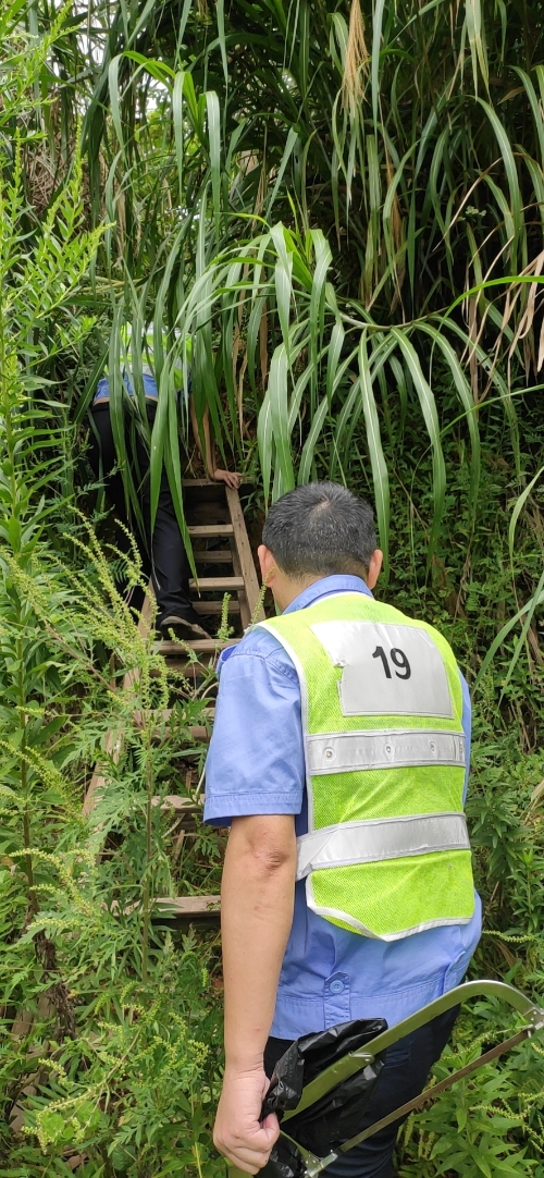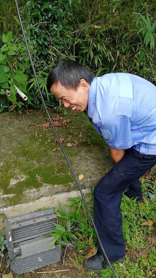 9月23日早上8點(diǎn)45分,中控員發(fā)現(xiàn)大溪嶺隧道北高位水池圖像模糊,照明燈不亮了。 為保障隧道消防安全,中控員對消防水池的水位需時時關(guān)注,萬一水池漏水無法及時查看,如遇火災(zāi),消防水供應(yīng)不上,后果不堪設(shè)想。隊(duì)長意識到事情的嚴(yán)重性,即刻安排電工湯寧光和陳幸趕往北面山上的高位水池位置。初秋的山上植物茂盛,原來通往水池的小路早已淹沒在雜草間,隊(duì)員們提著工具,憑著記憶找小路,單手撥開雜草往山上走,到達(dá)高位水池之后,他們分工協(xié)作,一邊檢查線路,一邊抬開井蓋并下到水池檢查照明燈,經(jīng)過檢查后發(fā)現(xiàn)只是線路有點(diǎn)松動,陳幸馬上對線路進(jìn)行加固。