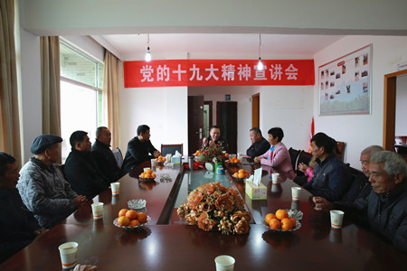 12月1日上午,公司黨委副書記、總經(jīng)理張建平在監(jiān)察室負責人的陪同下,驅(qū)車拐過山路十八彎,來到黃巖區(qū)上垟鄉(xiāng)潘山頭村宣講十九大精神。
