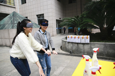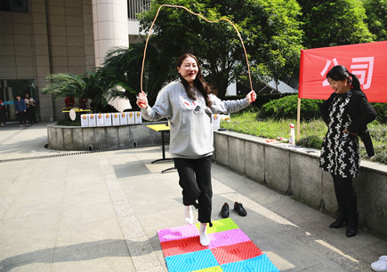 圖為活動工作人員集體照 在現(xiàn)場,職工們領(lǐng)著集花冊,按照活動規(guī)則積極收集夾彈珠、吹乒乓球、套圈、擠壓板跳繩、頂球、啤酒瓶扔筷子、蒙眼取物共7個項(xiàng)目的印花,領(lǐng)取禮品。這邊,一位同事趴在桌上,正在仔細(xì)瞄準(zhǔn)細(xì)小的啤酒瓶口扔筷子,那邊,傳來套圈項(xiàng)目的陣陣贊揚(yáng)聲,現(xiàn)場還有男女合作頂球……大家玩得不亦樂乎。其中擠壓板跳繩、蒙眼取物項(xiàng)目現(xiàn)場異?;钴S,在一旁等待的職工幫助加油打氣,整個活動充滿趣味和挑戰(zhàn)性。 參賽職工們順利完成了各個項(xiàng)目,大家在和諧愉悅又不乏激烈的氛圍中鍛煉了身體,釋放了生活和工作的壓力。 江涓