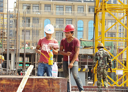 一周以來,我市出現(xiàn)持續(xù)高溫天氣,熱浪侵襲。集團下屬子公司仁和房產(chǎn)文鼎苑樓盤施工場地上,白天溫度高達38℃,地表溫度達60多℃,頭頂明晃晃的太陽,腳踩炙熱的鋼板和腳手架,兩百多名工人正在忙碌作業(yè)中。他們頭戴安全帽,隨身攜帶一個大容量水壺,脖子上再掛一條濕毛巾,這是他們當(dāng)中大部分人的標(biāo)準(zhǔn)解暑“裝備”。