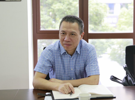 圖為集團(tuán)副董事長(zhǎng)、總經(jīng)理張建平認(rèn)真聽取相關(guān)人員下階段工作安排匯報(bào)