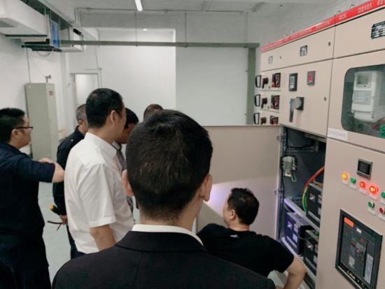 圖為多方合力查找問(wèn)題現(xiàn)場(chǎng) 5月23日,電力公司上門(mén)檢修,告知配電房及電路問(wèn)題一切正常。面對(duì)空調(diào)正常、電路正常的報(bào)告,展廳內(nèi)又嘗試開(kāi)啟空調(diào),但10分鐘左右高壓又跳閘。即將進(jìn)入炎熱的夏季,房產(chǎn)銷(xiāo)售展廳內(nèi)不能缺少空調(diào)。 房產(chǎn)公司求援于工程部機(jī)電設(shè)備維養(yǎng)中心,5月28日,葉俊等四名專(zhuān)業(yè)電力人員,以及大溪嶺隧道所金衛(wèi)軍赴銷(xiāo)售廳對(duì)電力問(wèn)題進(jìn)行現(xiàn)場(chǎng)勘察,經(jīng)仔細(xì)梳理、剖析,得出結(jié)論后反饋給電力部門(mén),電力部門(mén)采納建議后第二次派人前來(lái)整改,歷史遺留電力問(wèn)題終于徹底排除。 鄭攀