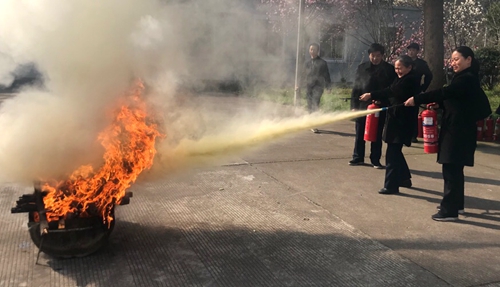 圖為滅火器使用模擬演練現(xiàn)場(chǎng)