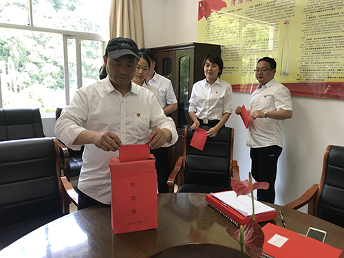 圖為投票現(xiàn)場 會議通過舉手表決方式一致通過了選舉辦法和監(jiān)票人、計票人名單。本次選舉大會應(yīng)到正式黨員11名,實到10名。經(jīng)過計票、監(jiān)票等程序,以差額無記名方式推選孫明偉、周戰(zhàn)、陳瑩三名同志為新一屆支部委員會委員。在隨后召開的支委會第一次會議上,選舉孫明偉任支部書記,周戰(zhàn)任紀(jì)律委員,陳瑩任組織宣傳委員。
